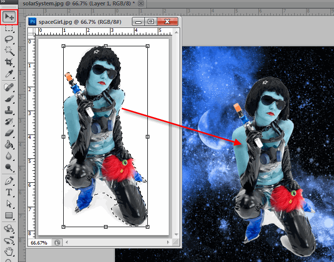 Once both images are downloaded to your computer, open both in Photoshop. Select the Space Girl image first in Photoshop.